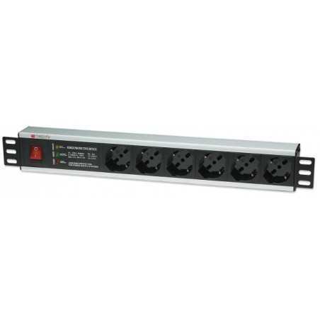 6-fach Steckdosenleiste mit Schalter und Schutz für 19" Rackschrank