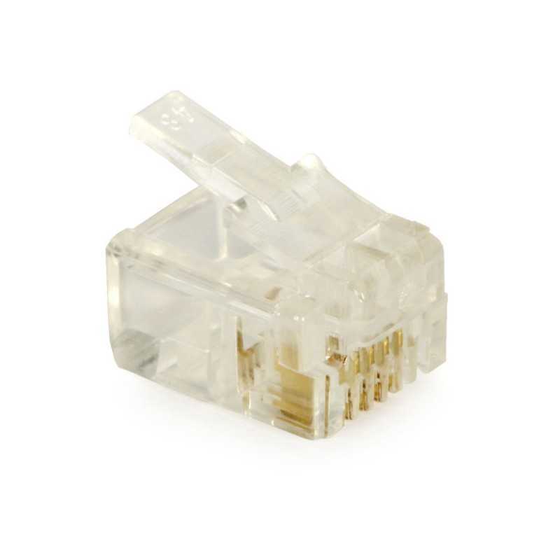 Pack of 100 pieces with 4-pole RJ11 connectors to be plugged into telephone cables.