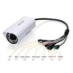 está equipado con un puerto POE que permite alimentar la cámara a través de un solo cable de red, esta útil función reduce los costos de cableado y permite colocar la cámara en lugares que no tienen acceso a la red eléctrica.